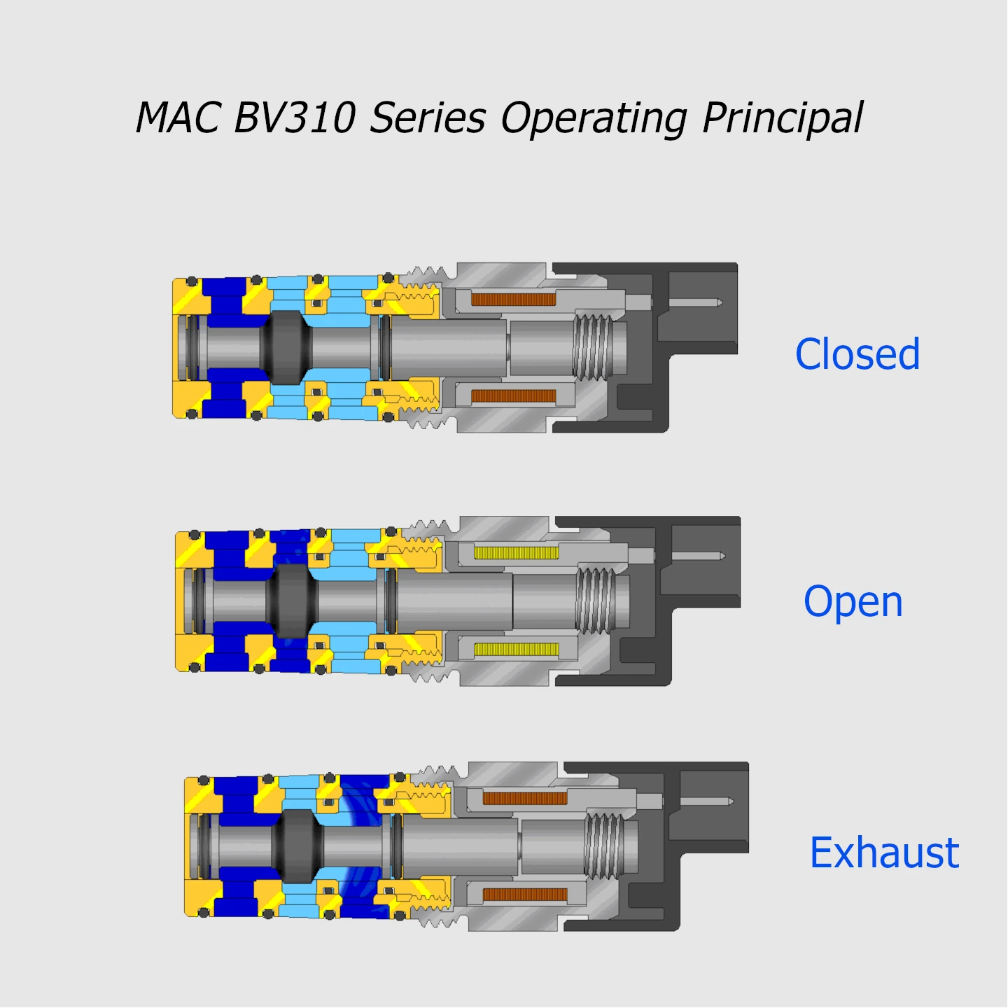 The MAC Valves BV310 is a 3 way Ø10 mm “Bullet Valve®” cartridge equipped with MAC’s unique lifting solenoid with integrated poppet/fixture. This balanced design keeps switching forces high. This ensures consistent response times regardless of variations in inlet pressure..