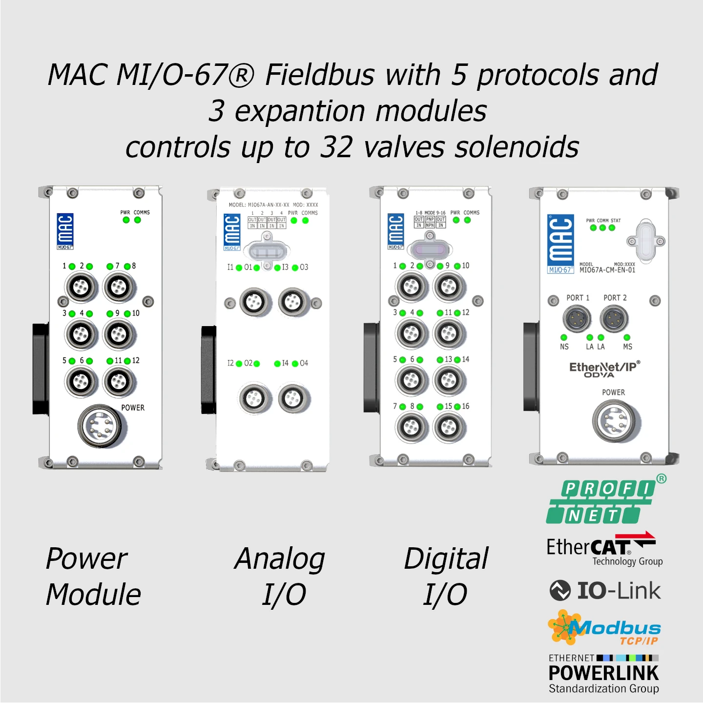 The MAC Valves MI/O 67 Fieldbus is a cleverly designed fieldbus module that takes MAC’s well-known pneumatic valve technology toward Industry 4.0.