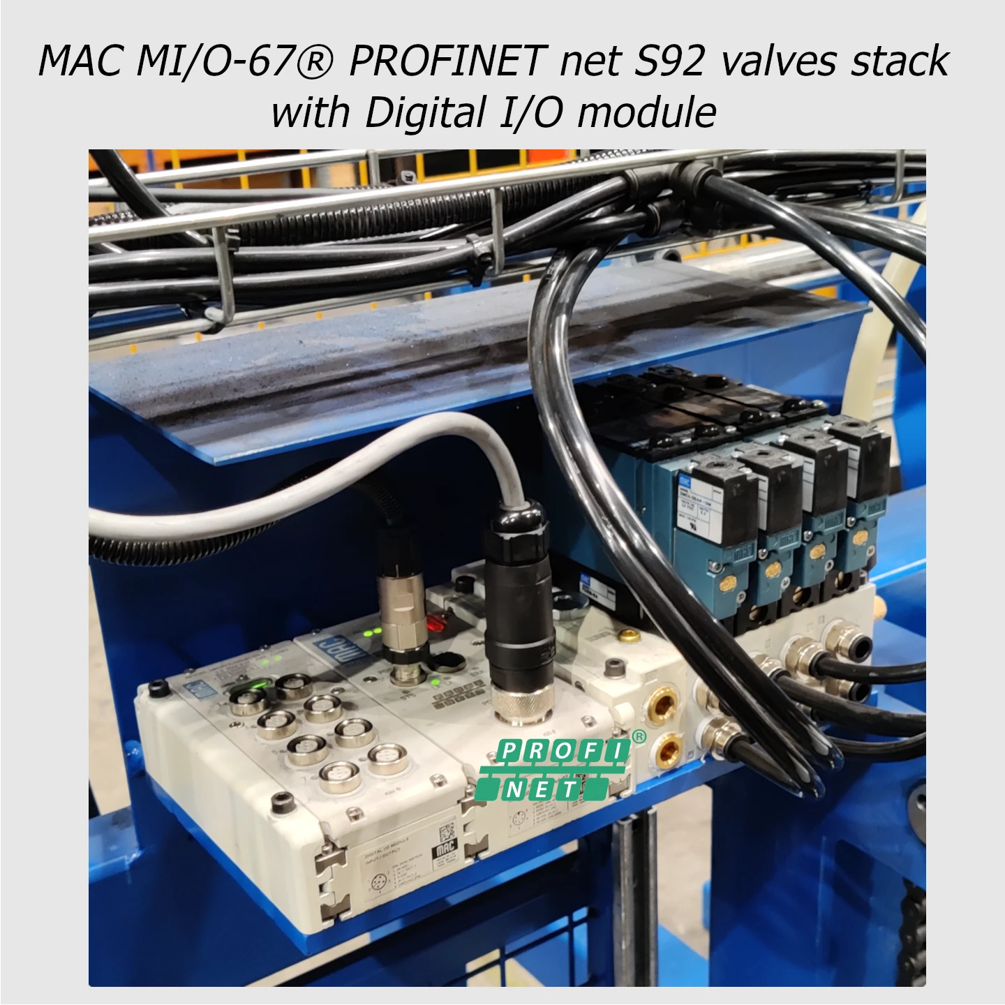 All of the MI/O‐67® modules operate on a 24VDC negative common setup.  The node is attached to the MAConnect® stack via a valve series specific adapter.
