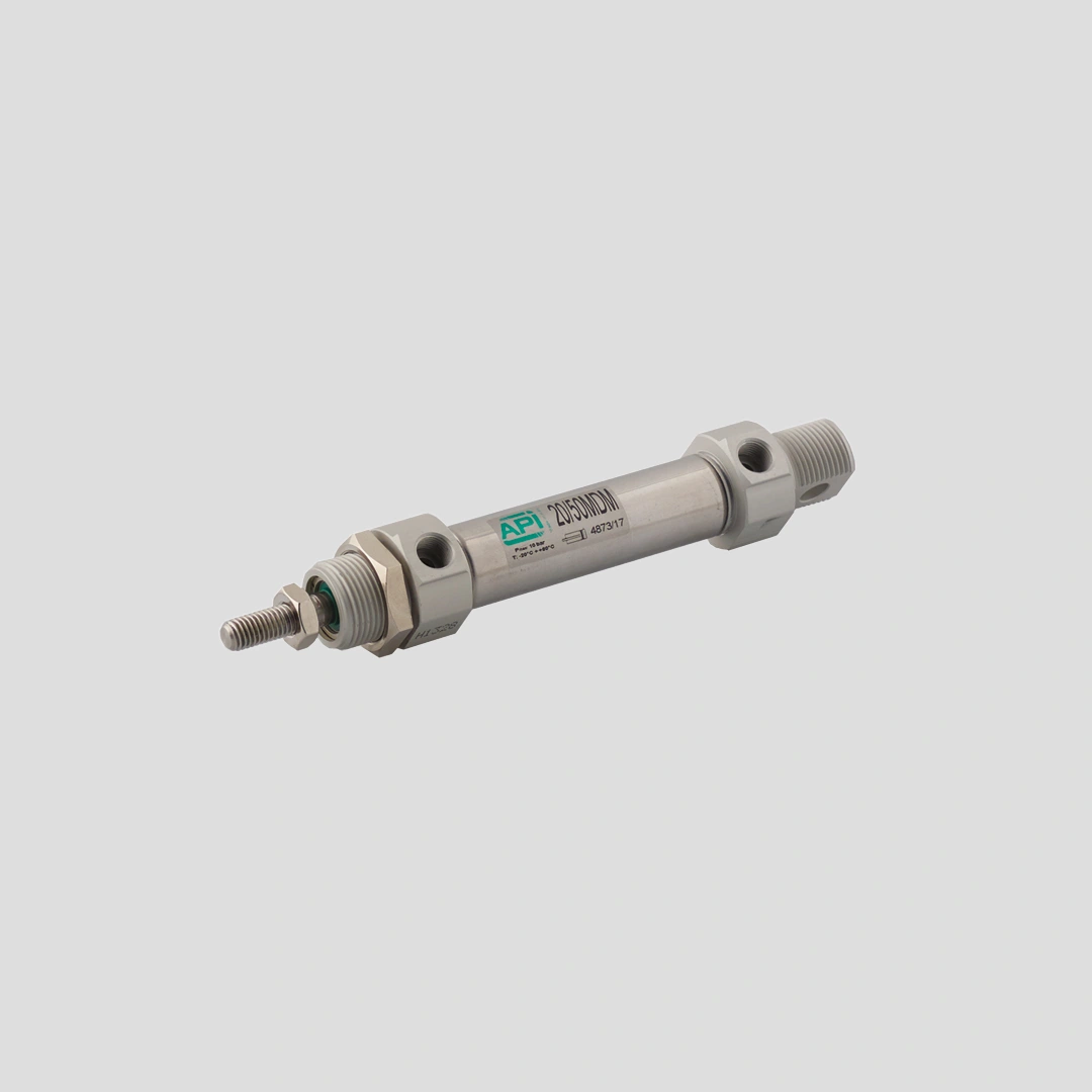 De ISO 6432 cilinder is een veelzijdige oplossing. Deze serie is verkrijgbaar in boorgroottes van 8 mm tot 25 mm en kan zowel enkelwerkend als dubbelwerkend worden geleverd. De cilinders zijn ontworpen volgens internationale normen en bieden een perfecte afdichting dankzij de gerolde verbinding tussen de koppen en de buis. Ze zijn uitgerust met rubberen stootkussens om de impact van de zuiger te dempen.